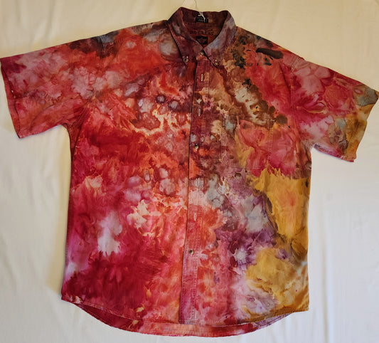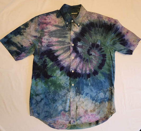 Hand Dyed, Button-down Short Sleeve Shirt.
