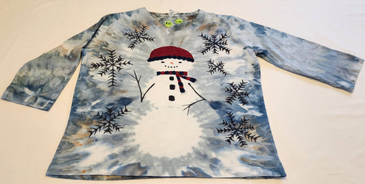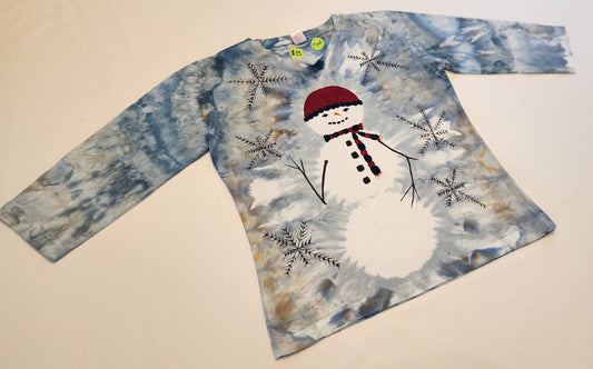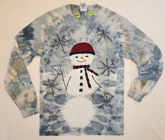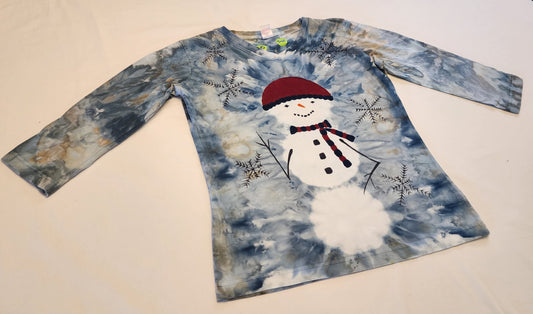 Hand-drawn and Dyed Snowman Shirt, Long Sleeve.